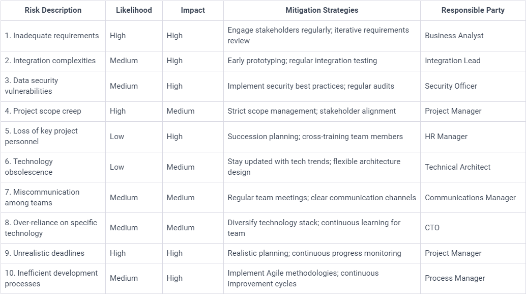 Scope Creep: JAC employs a dynamic requirement gathering process, coupling it with a stringent change management protocol. Regular client consultations ensure alignment with project objectives.
